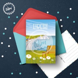 Étretat - "Etret'Art" Une nouvelle illustration dans un style art déco! Classe et chaleureuse, cette carte postale sur les falaises d'Etretat sera idéale pour un souvenir à garder chez soi. Enveloppe non comprise.
